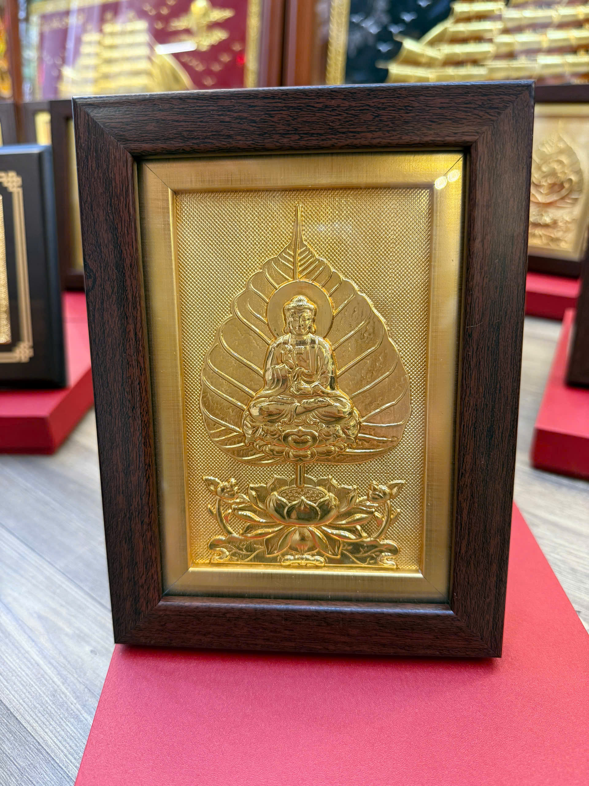 Những đường viền và đường nét lá nổi bật, tỉ mỉ, công phu tái hiện hình ảnh sống động về lá bồ đề như ngoài đời thực. Chính giữa của lá bồ đề là hình Phật được chạm khắc rất tinh xảo và đẹp mắt càng tăng thêm ý nghĩa phong thủy của tranh lá bồ đề. Ngoài ra, sắc vàng sang trọng từ chất liệu đồng vàng cao cấp cũng đại diện cho sự tôn quý như chính lòng tin của mỗi người về đức Phật.